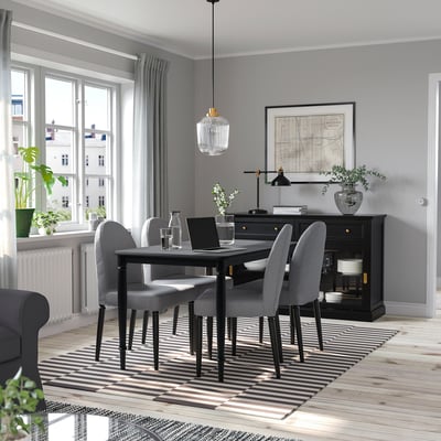 La regla general es que el tapete debe ser más largo que el comedor. En términos de grosor, es bueno que quede al menos 1/3 debajo del comedor.